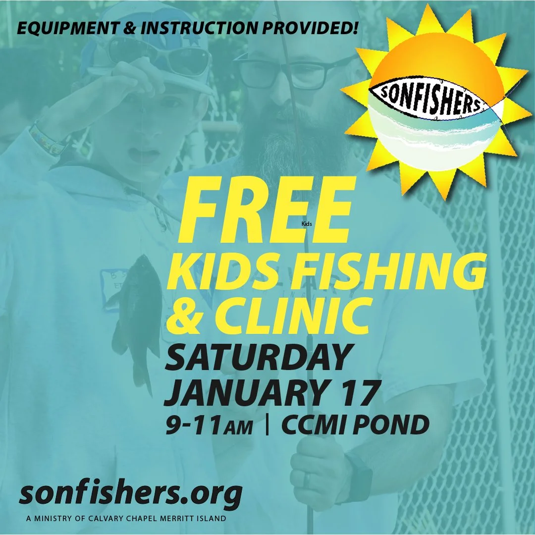 Please join Sonfishers for a FREE Kids Fishing & Clinic on Saturday, January 17th, from 9 to 11 am; ages 5-15. This is not a child drop-off event. Adults must attend with their children. Equipment and instruction will be provided. This clinic includes skills training stations (example: knot-tying). Located at the Calvary Chapel Merritt Island Pond and Picnic Area, 3500 N Courtenay Pkwy, Merritt Island, FL 32953. Have questions? Email info@sonfishers.org. Please sign up below.